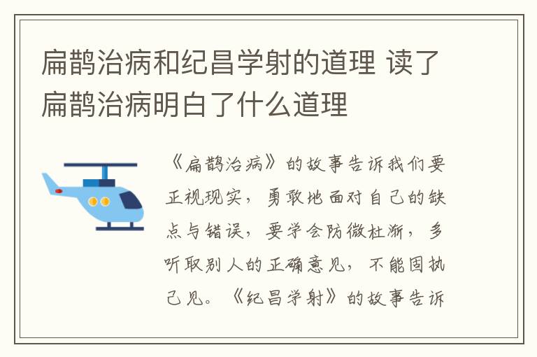 《扁鹊治病》的故事告诉我们要正视现实,勇敢地面对自己的缺点与错误,要学会防微杜渐,多听取别人的正确意见,不能固执己见。《纪昌学射》的故事告诉我们学习需要刻苦勤奋与坚持不懈,才能学得真正的本领。