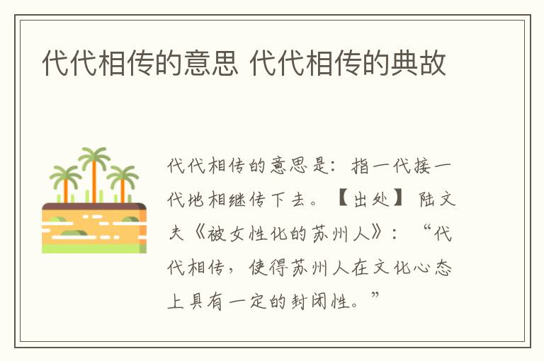 【出处】 陆文夫《被女性化的苏州人》:“代代相传,使得苏州人在文化心态上具有一定的封闭性。”