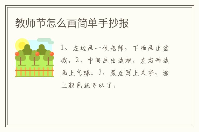 教师节怎么画简单手抄报简单又漂亮 知识分享 2月3日 编辑 童画 取消关注 关注 私信 1、左边画一位老师,下面画出盆栽。 2、中间画出边框,左右两边画上气球。 3、最后写上文字,涂上颜色就可以了。 No related posts. 本文内容由互联网用户自发贡献,该文观点仅代表作者本人。本站仅提供信息存储空间服务,不拥有所有权,不承担相关法律责任。如发现本站有涉嫌抄袭侵权/违法违规的内容, 请发送邮件至 2245678901@qq.com 举报,一经查实,本站将立刻删除。 给TA打赏 共{{data.count}}人 人已打赏
