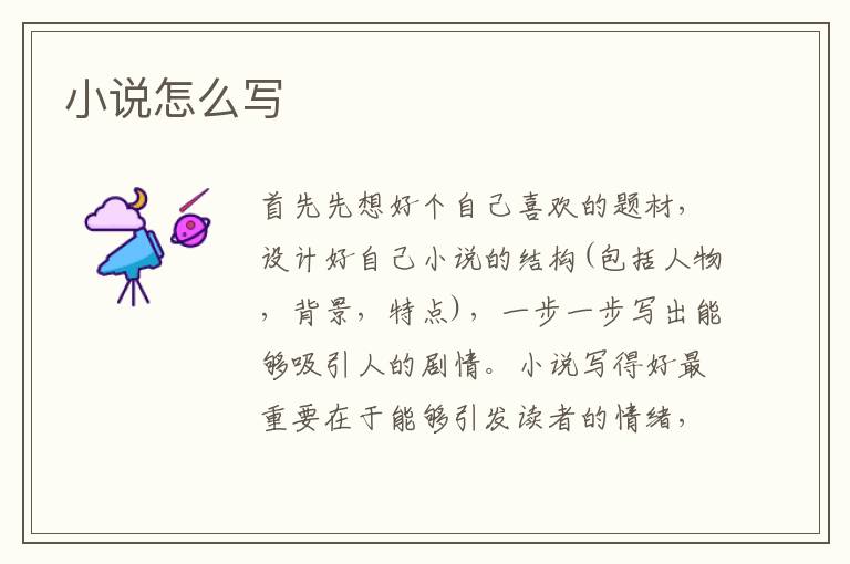 首先先想好个自己喜欢的题材,设计好自己小说的结构(包括人物,背景,特点),一步一步写出能够吸引人的剧情。