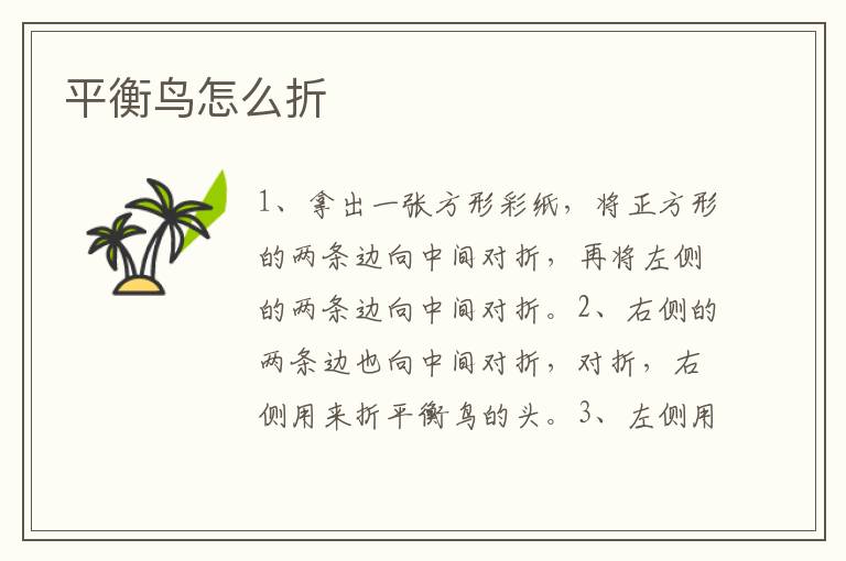 平衡鸟怎么折 知识分享 2月5日 编辑 童画 取消关注 关注 私信 1、拿出一张方形彩纸,将正方形的两条边向中间对折,再将左侧的两条边向中间对折。 2、右侧的两条边也向中间对折,对折,右侧用来折平衡鸟的头。 3、左侧用来折平衡鸟的尾巴,将纸从中间向内侧折。 4、再将右侧的小角从内侧向下折,平衡鸟就完成了。 No related posts. 本文内容由互联网用户自发贡献,该文观点仅代表作者本人。本站仅提供信息存储空间服务,不拥有所有权,不承担相关法律责任。如发现本站有涉嫌抄袭侵权/违法违规的内容, 请发送邮件至 2245678901@qq.com 举报,一经查实,本站将立刻删除。 给TA打赏 共{{data.count}}人 人已打赏