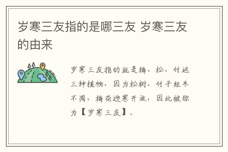 岁寒三友指的就是梅、松、竹这三种植物,因为松树、竹子经冬不凋,梅花迎寒开放,因此被称为“岁寒三友”。