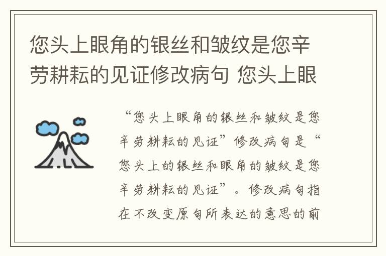 “您头上眼角的银丝和皱纹是您辛劳耕耘的见证”修改病句是“您头上的银丝和眼角的皱纹是您辛劳耕耘的见证”,修改病句指在不改变原句所表达的意思的前提下,修改有明显语病的词句,使语句通顺、正确,更加完善。修改病句的方法有补法、删法和换法。