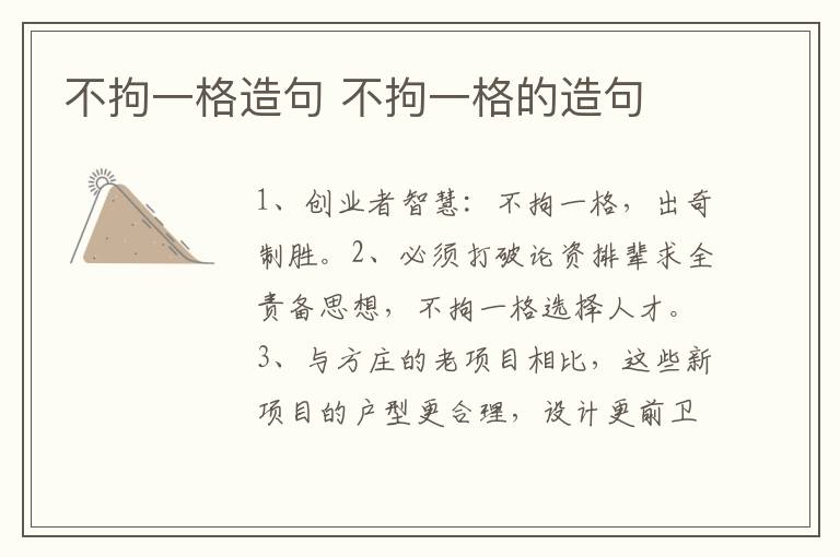18、所谓不拘一格,就是突破同类商号或产品取名的一般格局,以一种怀众不同的.方式来给公司名。