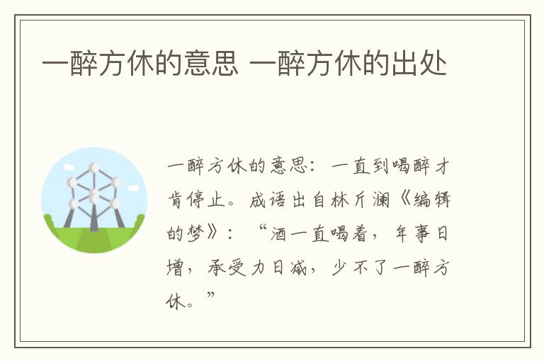 一醉方休的意思 一醉方休的出处 知识分享 2月7日 编辑 童画 取消关注 关注 私信 【读音】 yī zuì fāng xiū 【释义】 一直到喝醉才肯停止。 【出处】 林斤澜《编辑的梦》:“酒一直喝着,年事日增,承受力日减,少不了一醉方休。” 【近义词】不醉不归 【反义词】滴酒不沾 【例句】 大学同学多年未见,今日相聚,一定要喝个一醉方休,不醉不归。 No related posts. 本文内容由互联网用户自发贡献,该文观点仅代表作者本人。本站仅提供信息存储空间服务,不拥有所有权,不承担相关法律责任。如发现本站有涉嫌抄袭侵权/违法违规的内容, 请发送邮件至 2245678901@qq.com 举报,一经查实,本站将立刻删除。 给TA打赏 共{{data.count}}人 人已打赏