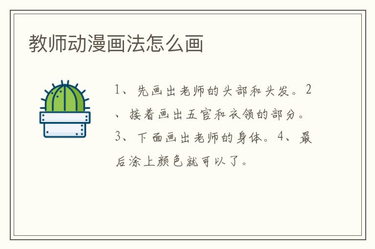 教师动漫画法怎么画简单又漂亮 知识分享 2月6日 编辑 童画 取消关注 关注 私信 1、先画出老师的头部和头发。 2、接着画出五官和衣领的部分。 3、下面画出老师的身体。 4、最后涂上颜色就可以了。 No related posts. 本文内容由互联网用户自发贡献,该文观点仅代表作者本人。本站仅提供信息存储空间服务,不拥有所有权,不承担相关法律责任。如发现本站有涉嫌抄袭侵权/违法违规的内容, 请发送邮件至 2245678901@qq.com 举报,一经查实,本站将立刻删除。 给TA打赏 共{{data.count}}人 人已打赏