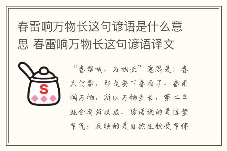“春雷响,万物长”意思是:春天打雷,即是要下春雨了,春雨润万物,所以万物生长,第二年就会有好收成。