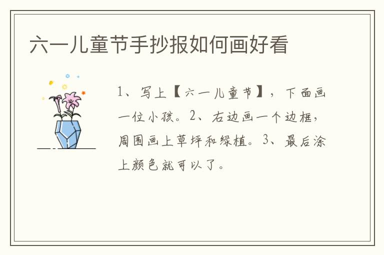 六一儿童节手抄报如何画好看 知识分享 2月3日 编辑 童画 取消关注 关注 私信 1、写上【六一儿童节】,下面画一位小孩。 2、右边画一个边框,周围画上草坪和绿植。 3、最后涂上颜色就可以了。 No related posts. 本文内容由互联网用户自发贡献,该文观点仅代表作者本人。本站仅提供信息存储空间服务,不拥有所有权,不承担相关法律责任。如发现本站有涉嫌抄袭侵权/违法违规的内容, 请发送邮件至 2245678901@qq.com 举报,一经查实,本站将立刻删除。 给TA打赏 共{{data.count}}人 人已打赏