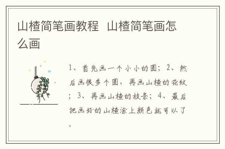 山楂简笔画教程 山楂简笔画怎么画简单又漂亮 知识分享 2月2日 编辑 童画 取消关注 关注 私信 1、首先画一个小小的圆; 2、然后画很多个圆,再画山楂的花纹; 3、再画山楂的枝条; 4、最后把画好的山楂涂上颜色就可以了。 No related posts. 本文内容由互联网用户自发贡献,该文观点仅代表作者本人。本站仅提供信息存储空间服务,不拥有所有权,不承担相关法律责任。如发现本站有涉嫌抄袭侵权/违法违规的内容, 请发送邮件至 2245678901@qq.com 举报,一经查实,本站将立刻删除。 给TA打赏 共{{data.count}}人 人已打赏