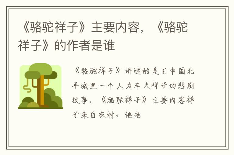 《骆驼祥子》讲述的是旧中国北平城里一个人力车夫祥子的悲剧故事。
