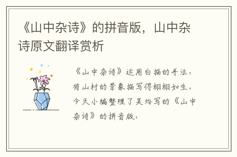 《山中杂诗》运用白描的手法,将山村的景象描写得栩栩如生。今天小编整理了吴均写的《山中杂诗》的拼音版,让我们一起来赏析一下吧。