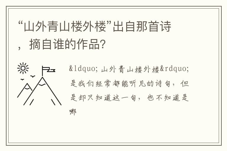 “山外青山楼外楼”是我们经常都能听见的诗句,但是却只知道这一句,也不知道是哪位诗人所作。今天小编便将这首诗的作者找了出来,让我们一起来看看吧。