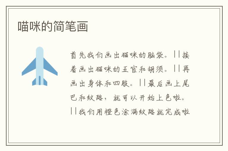 喵咪的简笔画 知识分享 2月3日 编辑 童画 取消关注 关注 私信 1.首先我们画出猫咪的脑袋。 2.接着画出猫咪的五官和胡须。 3.再画出身体和四肢。 4.最后画上尾巴和纹路,就可以开始上色啦。 5.我们用橙色涂满纹路就完成啦。 No related posts. 本文内容由互联网用户自发贡献,该文观点仅代表作者本人。本站仅提供信息存储空间服务,不拥有所有权,不承担相关法律责任。如发现本站有涉嫌抄袭侵权/违法违规的内容, 请发送邮件至 2245678901@qq.com 举报,一经查实,本站将立刻删除。 给TA打赏 共{{data.count}}人 人已打赏