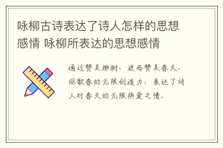 通过赞美柳树,进而赞美春天,讴歌春的无限创造力,表达了诗人对春天的无限热爱之情。