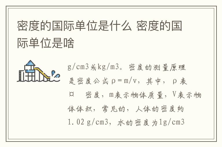 密度的国际单位是什么 密度的国际单位是啥 知识分享 2月6日 编辑 童画 取消关注 关注 私信 密度的国际单位是g/cm3或kg/m3。密度的测量原理是密度公式ρ= m/v,其中,ρ表示密度,m表示物体质量,V表示物体体积,常见的,人体的密度约1.02 g/cm3,水的密度为1g/cm3。 No related posts. 本文内容由互联网用户自发贡献,该文观点仅代表作者本人。本站仅提供信息存储空间服务,不拥有所有权,不承担相关法律责任。如发现本站有涉嫌抄袭侵权/违法违规的内容, 请发送邮件至 2245678901@qq.com 举报,一经查实,本站将立刻删除。 给TA打赏 共{{data.count}}人 人已打赏