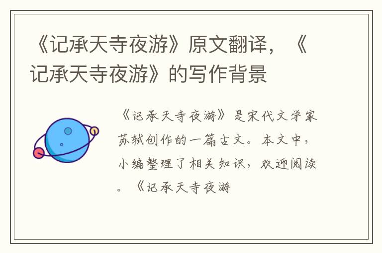 《记承天寺夜游》是宋代文学家苏轼创作的一篇古文。本文中,小编整理了相关知识,欢迎阅读。