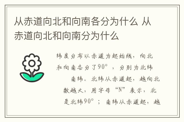 纬度分布以赤道为起始线,向北和向南各分了90°,分别为北纬和南纬。北纬从赤道起,越向北度数越大,用字母“N”表示,北极是北纬90°;南纬从赤道起,越向南度数越大,用字母“S”表示,南极是南纬90°。