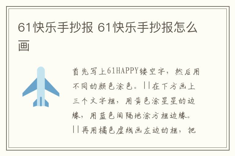 61快乐手抄报 61快乐手抄报怎么画简单又漂亮 知识分享 2月6日 编辑 童画 取消关注 关注 私信 1、首先写上61HAPPY镂空字,然后用不同的颜色涂色。 2、在下方画上三个文字框,用黄色涂星星的边缘,用蓝色间隔地涂方框边缘。 3、再用橘色虚线画左边的框,把手抄报边缘画上红色,在最下方添加一些小草装饰,最后画上文字线就画好了。 No related posts. 本文内容由互联网用户自发贡献,该文观点仅代表作者本人。本站仅提供信息存储空间服务,不拥有所有权,不承担相关法律责任。如发现本站有涉嫌抄袭侵权/违法违规的内容, 请发送邮件至 2245678901@qq.com 举报,一经查实,本站将立刻删除。 给TA打赏 共{{data.count}}人 人已打赏