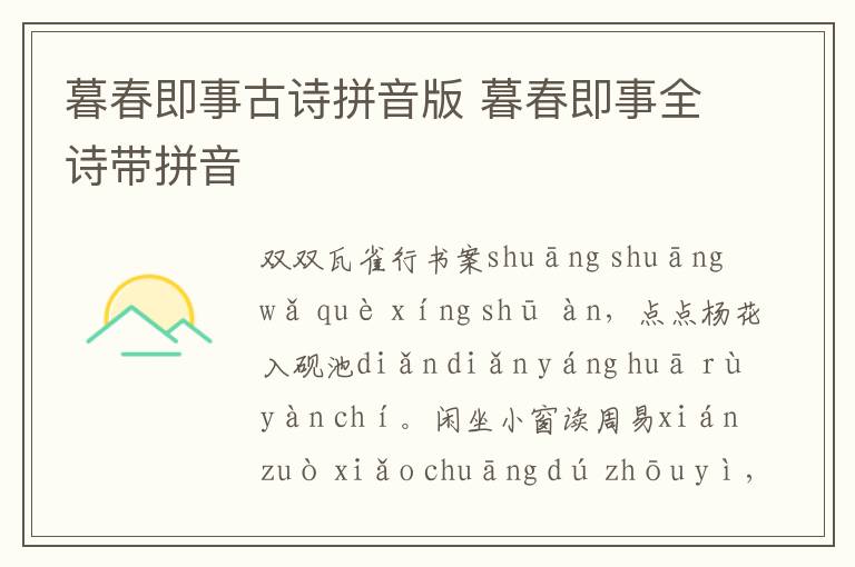 shuāng shuāng wǎ què xíng shū àn , diǎn diǎn yáng huā rù yàn chí 。