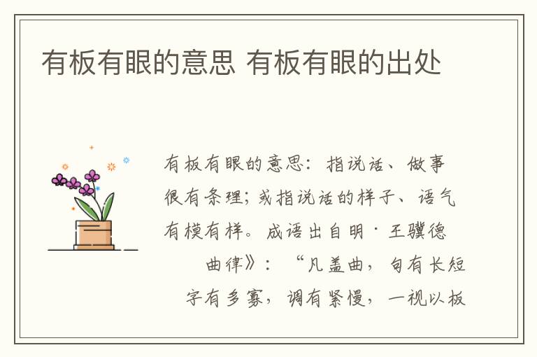 【出处】 明·王骥德《曲律》:“凡盖曲,句有长短,字有多寡,调有紧慢,一视以板眼为节制,故谓之板眼。”