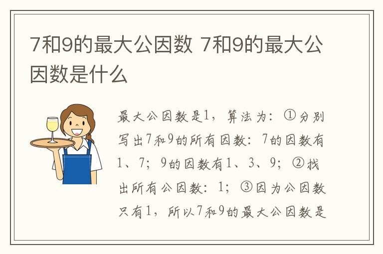 7和9的最大公因数 7和9的最大公因数是什么 知识分享 2月11日 编辑 童画 取消关注 关注 私信 7和9的最大公因数是1,算法为: ①分别写出7和9的所有因数: 7的因数有1、7; 9的因数有1、3、9; ②找出所有公因数:1; ③因为公因数只有1,所以7和9的最大公因数是1。 No related posts. 本文内容由互联网用户自发贡献,该文观点仅代表作者本人。本站仅提供信息存储空间服务,不拥有所有权,不承担相关法律责任。如发现本站有涉嫌抄袭侵权/违法违规的内容, 请发送邮件至 2245678901@qq.com 举报,一经查实,本站将立刻删除。 给TA打赏 共{{data.count}}人 人已打赏