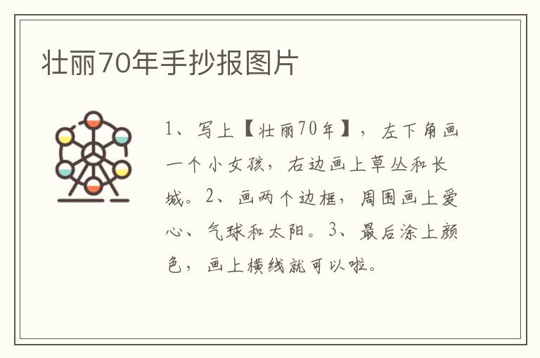 壮丽70年手抄报图片 知识分享 2月11日 编辑 童画 取消关注 关注 私信 1、写上【壮丽70年】,左下角画一个小女孩,右边画上草丛和长城。 2、画两个边框,周围画上爱心、气球和太阳。 3、最后涂上颜色,画上横线就可以啦。 No related posts. 本文内容由互联网用户自发贡献,该文观点仅代表作者本人。本站仅提供信息存储空间服务,不拥有所有权,不承担相关法律责任。如发现本站有涉嫌抄袭侵权/违法违规的内容, 请发送邮件至 2245678901@qq.com 举报,一经查实,本站将立刻删除。 给TA打赏 共{{data.count}}人 人已打赏