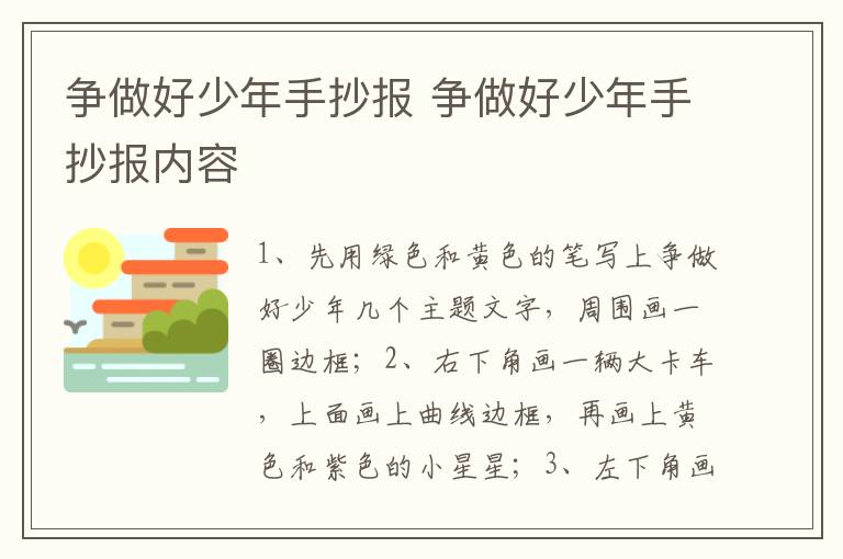 争做好少年手抄报 争做好少年手抄报内容 知识分享 2月22日 编辑 童画 取消关注 关注 私信 1、先用绿色和黄色的笔写上争做好少年几个主题文字,周围画一圈边框。 2、右下角画一辆大卡车,上面画上曲线边框,再画上黄色和紫色的小星星。 3、左下角画上一个不规则的边框,再画上边上的花纹,左上角画上小花。 4、汽车周围涂上黄色,最后用笔画出一条条直线就可以了,右上角画上小花就行了。 No related posts. 本文内容由互联网用户自发贡献,该文观点仅代表作者本人。本站仅提供信息存储空间服务,不拥有所有权,不承担相关法律责任。如发现本站有涉嫌抄袭侵权/违法违规的内容, 请发送邮件至 2245678901@qq.com 举报,一经查实,本站将立刻删除。 给TA打赏 共{{data.count}}人 人已打赏