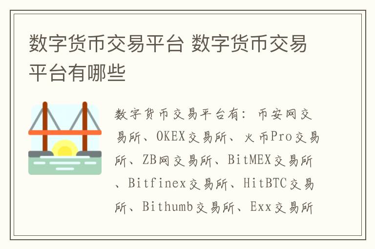 数字货币交易平台指的是用于交易数字货币的线上平台,一般依托于网站。数字货币交易平台有币安网交易所、OKEX交易所等平台,数字货币交易平台面向全球用户提供多币种、多语言的币币兑换服务,提供多种数字资产品类的交易及投资服务。
