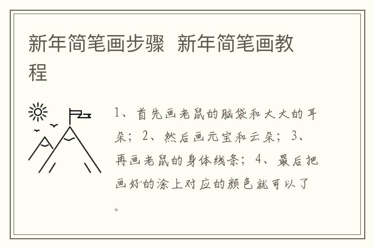新年简笔画步骤 新年简笔画教程 知识分享 2月22日 编辑 童画 取消关注 关注 私信 1、首先画老鼠的脑袋和大大的耳朵; 2、然后画元宝和云朵; 3、再画老鼠的身体线条; 4、最后把画好的涂上对应的颜色就可以了。 No related posts. 本文内容由互联网用户自发贡献,该文观点仅代表作者本人。本站仅提供信息存储空间服务,不拥有所有权,不承担相关法律责任。如发现本站有涉嫌抄袭侵权/违法违规的内容, 请发送邮件至 2245678901@qq.com 举报,一经查实,本站将立刻删除。 给TA打赏 共{{data.count}}人 人已打赏