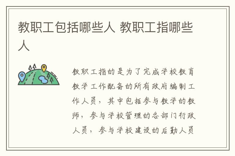 教职工指的是为了完成学校教育教学工作配备的所有政府编制工作人员,其中包括参与教学的教师,参与学校管理的各部门行政人员,参与学校建设的后勤人员等;教职工不包括物业人员、保洁人员等。