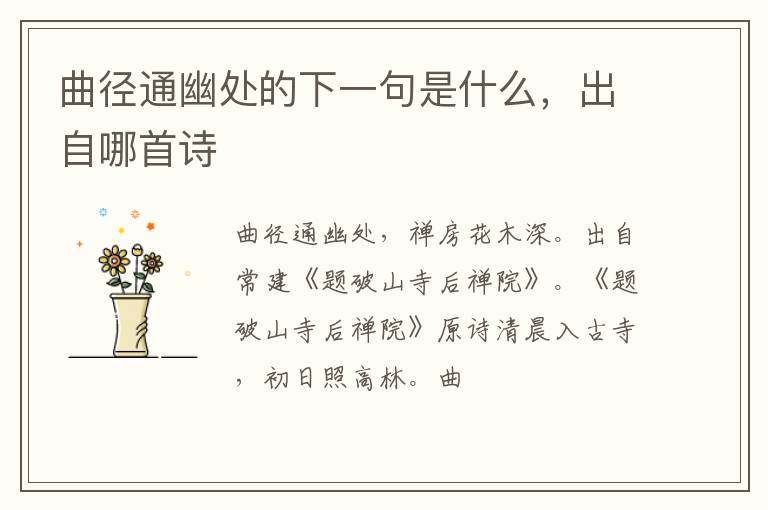 以上就是小编整理的曲径通幽处的下一句,感谢阅读。