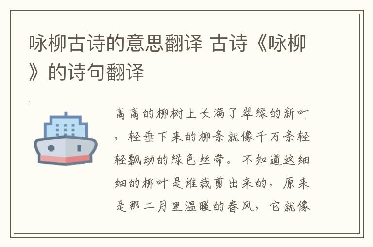 诗的首句写柳树,作者将树拟人化,把柳树比喻成一位经过梳妆打扮的亭亭玉立的美人,使整个画面充满了青春活力。次句将垂下来的柳叶比作少女身上垂坠的绿色丝织裙带,将柳树的风韵描绘了出来,充满青春活力。