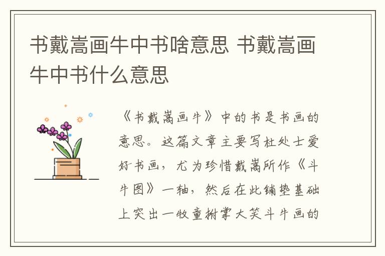 《书戴嵩画牛》中的书是书画的意思。这篇文章主要写杜处士爱好书画,尤为珍惜戴嵩所作《斗牛图》一轴,然后在此铺垫基础上突出一牧童拊掌大笑斗牛画的情景,最后以古语结束全篇,暗讥当政者不尊重现实而胡乱变法改制的错误行为。