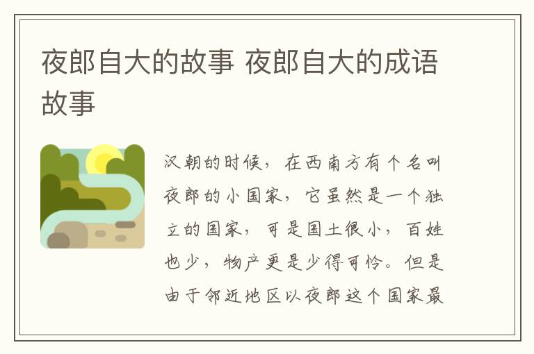 汉朝的时候,在西南方有个名叫夜郎的小国家,它虽然是一个独立的国家,可是国土很小,百姓也少,物产更是少得可怜。但是由于邻近地区以夜郎这个国家最大,从没离开过国家的夜郎国国王就以为自己统治的国家是全天下最大的国家。