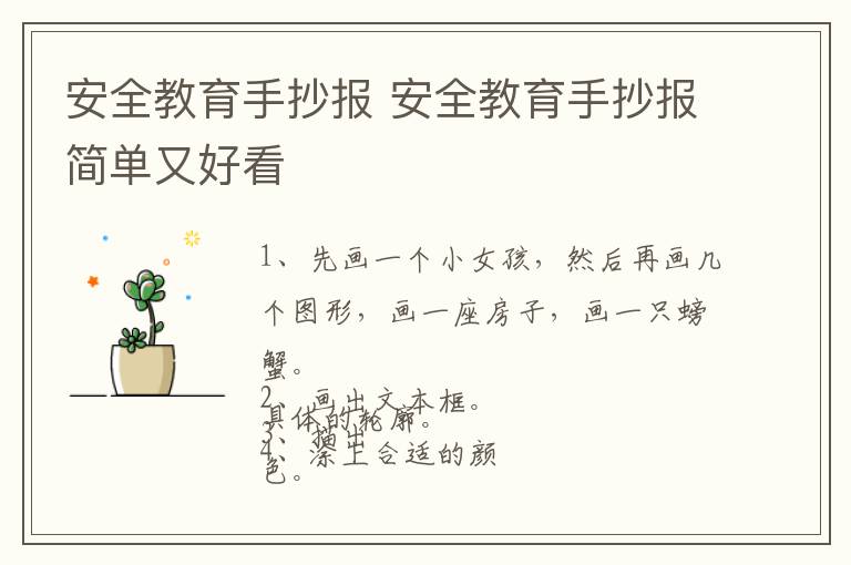 安全教育手抄报 安全教育手抄报简单又好看 知识分享 3月23日 编辑 童画 取消关注 关注 私信 1、先画一个小女孩,然后再画几个图形,画一座房子,画一只螃蟹。 2、画出文本框。 3、描出具体的轮廓。 4、涂上合适的颜色。 No related posts. 本文内容由互联网用户自发贡献,该文观点仅代表作者本人。本站仅提供信息存储空间服务,不拥有所有权,不承担相关法律责任。如发现本站有涉嫌抄袭侵权/违法违规的内容, 请发送邮件至 2245678901@qq.com 举报,一经查实,本站将立刻删除。 给TA打赏 共{{data.count}}人 人已打赏