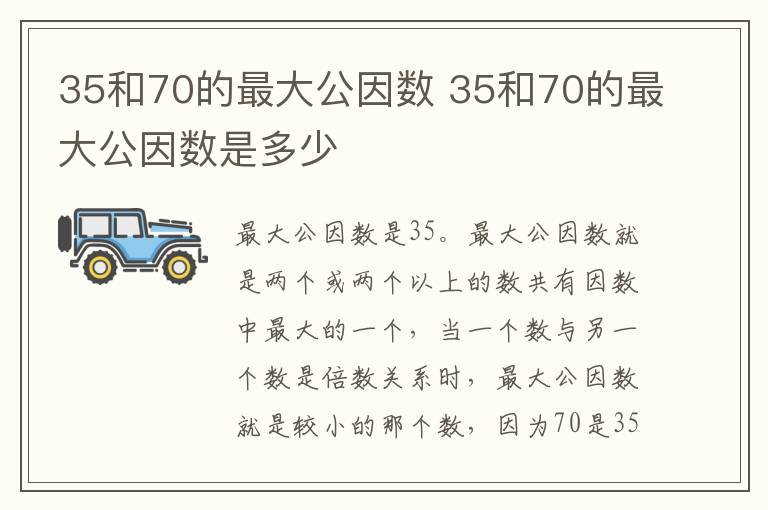 35和70的最大公因数是35。最大公因数就是两个或两个以上的数共有因数中最大的一个,当一个数与另一个数是倍数关系时,最大公因数就是较小的那个数,因为70是35的2倍。所以,35和70的最大公因数是35。