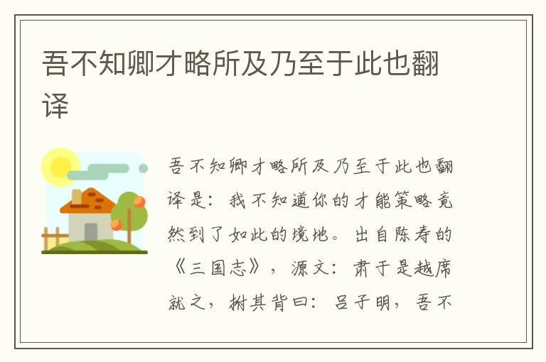 吾不知卿才略所及乃至于此也翻译是:我不知道你的才能策略竟然到了如此的境地。出自《三国志》。