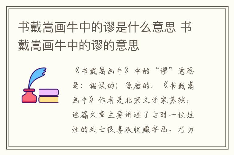 《书戴嵩画牛》中的“谬”意思是:错误的;荒唐的。《书戴嵩画牛》作者是北宋文学家苏轼,这篇文章主要讲述了古时一位姓杜的处士很喜欢收藏字画,尤为珍惜画师戴嵩所作的一幅《斗牛图》,一日他在晾晒这幅画时被一个孩童看到,却被孩童指出,《斗牛图》画错的故事。