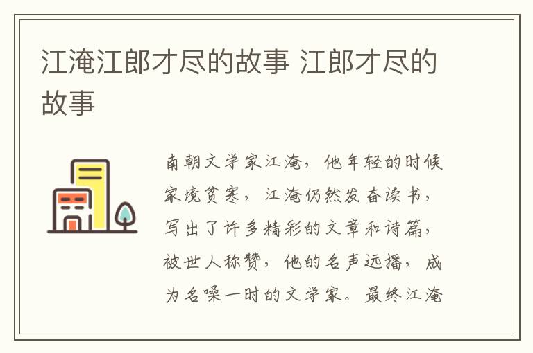 江淹是南北朝时期的文学家,曾经连续在南朝宋、齐、梁三朝做官,担任过许多官职。他年轻的时候,家中十分贫困。由于父亲去世早,所以很小的时候,他就上山砍柴,靠卖柴供奉母亲。尽管条件艰苦,江淹仍然发奋读书。由于他刻苦自学,写出了许多精彩的文章和诗篇,世人读了,个个称赞,他的名声就传扬开去,最终江淹受到朝廷的器重。