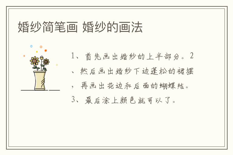 婚纱简笔画 婚纱的画法 知识分享 3月12日 编辑 童画 取消关注 关注 私信 1、首先画出婚纱的上半部分。 2、然后画出婚纱下边蓬松的裙摆,再画出花边和后面的蝴蝶结。 3、最后涂上颜色就可以了。 No related posts. 本文内容由互联网用户自发贡献,该文观点仅代表作者本人。本站仅提供信息存储空间服务,不拥有所有权,不承担相关法律责任。如发现本站有涉嫌抄袭侵权/违法违规的内容, 请发送邮件至 2245678901@qq.com 举报,一经查实,本站将立刻删除。 给TA打赏 共{{data.count}}人 人已打赏