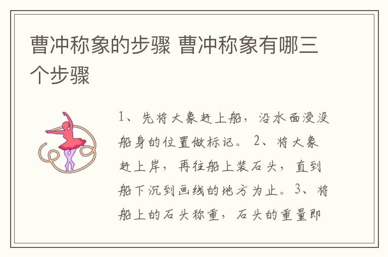 《曹冲称象》的步骤:1、先将大象赶上船,沿水面浸没船身的位置做标记。