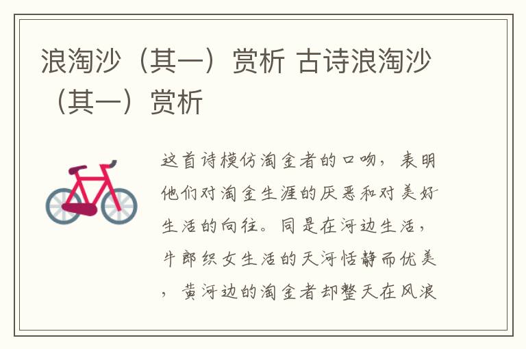 《浪淘沙》其一是唐代文学家刘禹锡的作品,全诗内容为: