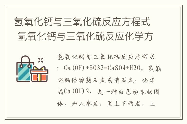 氢氧化钙与三氧化硫反应方程式:Ca(OH)+SO32=CaSO4+H2O。