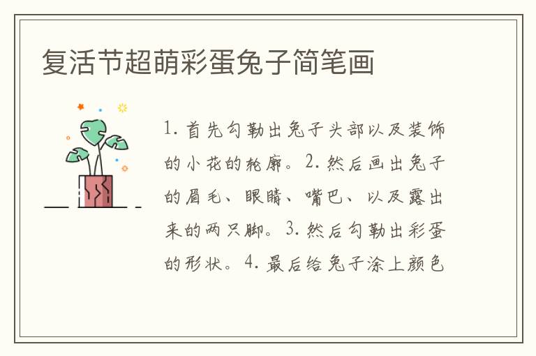 复活节超萌彩蛋兔子简笔画 知识分享 3月23日 编辑 童画 取消关注 关注 私信 1.首先勾勒出兔子头部以及装饰的小花的轮廓。 2.然后画出兔子的眉毛、眼睛、嘴巴、以及露出来的两只脚。 3.然后勾勒出彩蛋的形状。 4.最后给兔子涂上颜色以及装饰彩蛋就可以了。 No related posts. 本文内容由互联网用户自发贡献,该文观点仅代表作者本人。本站仅提供信息存储空间服务,不拥有所有权,不承担相关法律责任。如发现本站有涉嫌抄袭侵权/违法违规的内容, 请发送邮件至 2245678901@qq.com 举报,一经查实,本站将立刻删除。 给TA打赏 共{{data.count}}人 人已打赏