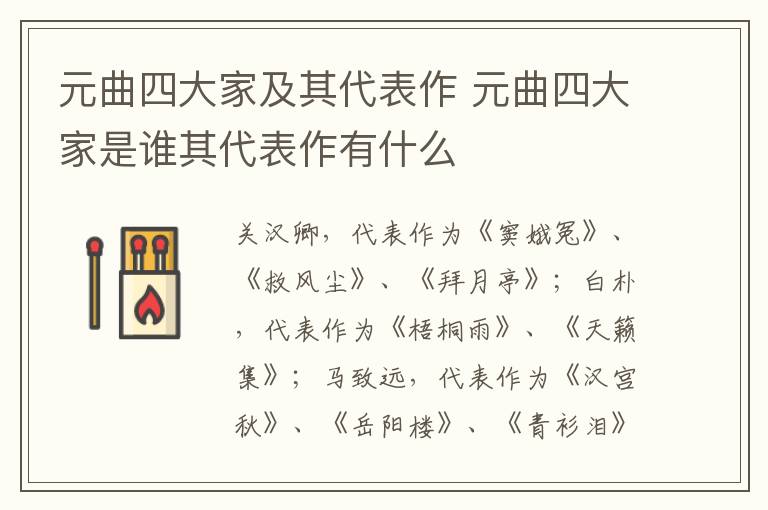 马致远,代表作为《汉宫秋》、《岳阳楼》、《青衫泪》;