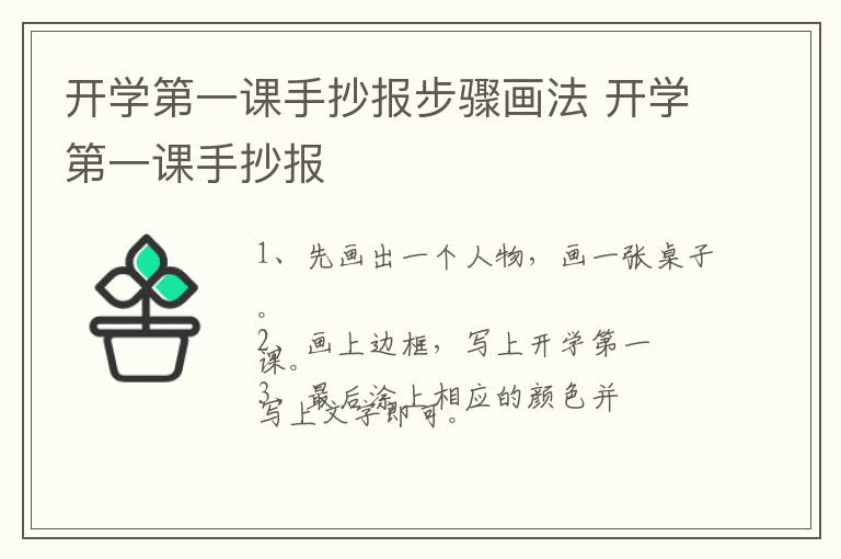 开学第一课手抄报步骤画法 开学第一课手抄报 知识分享 3月25日 编辑 童画 取消关注 关注 私信 1、先画出一个人物,画一张桌子。 2、画上边框,写上开学第一课。 3、最后涂上相应的颜色并写上文字即可。 No related posts. 本文内容由互联网用户自发贡献,该文观点仅代表作者本人。本站仅提供信息存储空间服务,不拥有所有权,不承担相关法律责任。如发现本站有涉嫌抄袭侵权/违法违规的内容, 请发送邮件至 2245678901@qq.com 举报,一经查实,本站将立刻删除。 给TA打赏 共{{data.count}}人 人已打赏