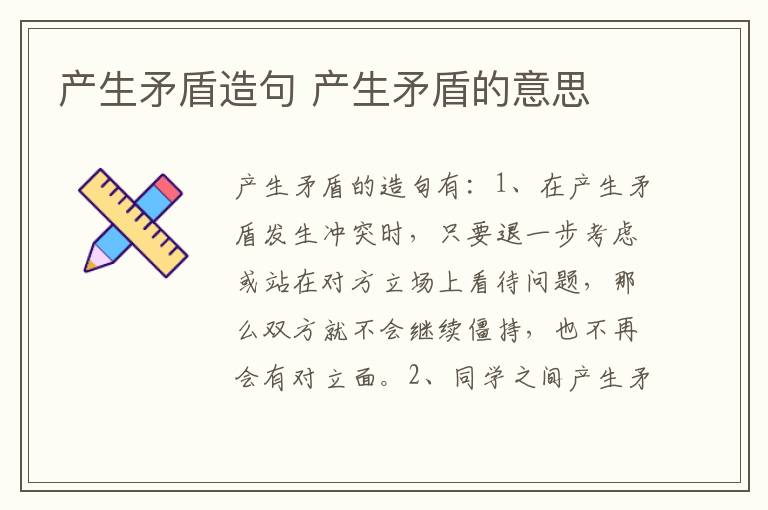 产生矛盾的造句有:1、在产生矛盾发生冲突时,只要退一步考虑或站在对方立场上看待问题,那么双方就不会继续僵持,也不再会有对立面。2、同学之间产生矛盾要及时解决,以免影响团结。3、同学间产生矛盾,要彼此多做自我批评。