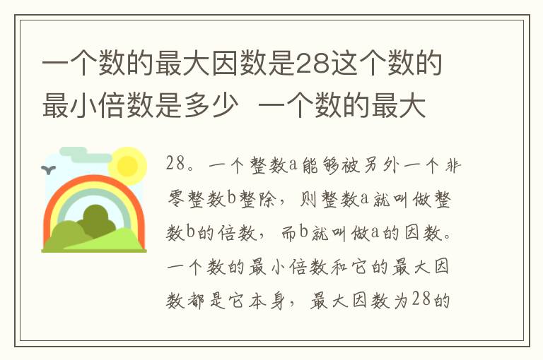 一个数的最大因数是28这个数的最小倍数是多少 一个数的最大因数是28这个数的最小倍数是几 知识分享 3月23日 编辑 童画 取消关注 关注 私信 一个数的最大因数是28这个数的最小倍数是28。 一个整数a能够被另外一个非零整数b整除,则整数a就叫做整数b的倍数,而b就叫做a的因数。一个数的最小倍数和它的最大因数都是它本身,最大因数为28的数为28,它的最小倍数也为28。 No related posts. 本文内容由互联网用户自发贡献,该文观点仅代表作者本人。本站仅提供信息存储空间服务,不拥有所有权,不承担相关法律责任。如发现本站有涉嫌抄袭侵权/违法违规的内容, 请发送邮件至 2245678901@qq.com 举报,一经查实,本站将立刻删除。 给TA打赏 共{{data.count}}人 人已打赏