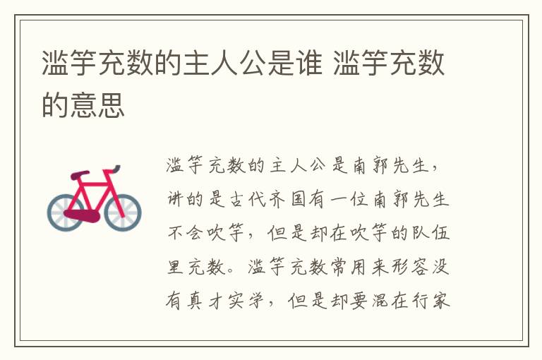 滥竽充数的主人公是南郭先生,讲的是古代齐国有一位南郭先生不会吹竽,但是却在吹竽的队伍里充数。滥竽充数常用来形容没有真才实学,但是却要混在行家里冒充自己有本领的人。