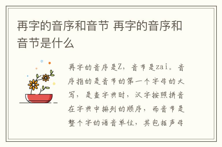 再字的音序和音节 再字的音序和音节是什么 知识分享 3月23日 编辑 童画 取消关注 关注 私信 再字的音序是Z,音节是zai。音序指的是音节的第一个字母的大写,是查字典时,汉字按照拼音在字典中排列的顺序,而音节是整个字的语音单位,其包括声母和韵母,用于给汉字注音,再字的声母是z,韵母是ai,声母和韵母组成完整音节zai,所以,再字的音序是Z,音节是ai。 No related posts. 本文内容由互联网用户自发贡献,该文观点仅代表作者本人。本站仅提供信息存储空间服务,不拥有所有权,不承担相关法律责任。如发现本站有涉嫌抄袭侵权/违法违规的内容, 请发送邮件至 2245678901@qq.com 举报,一经查实,本站将立刻删除。 给TA打赏 共{{data.count}}人 人已打赏